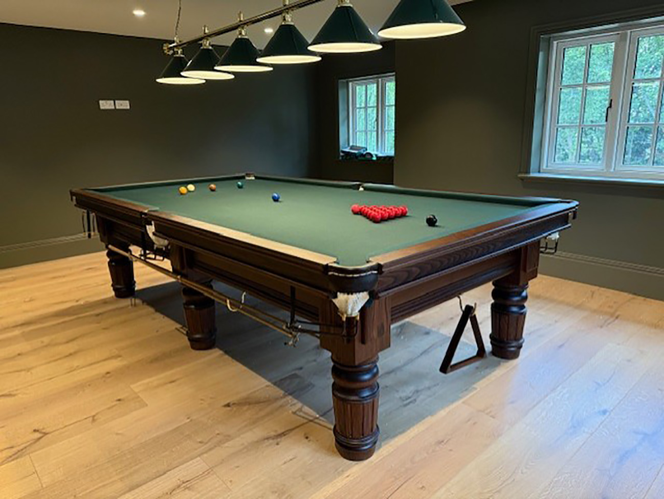 Brass fittings, leather pockets (dark brown) with all games rail and Hainsworth Smart - ranger green cloth